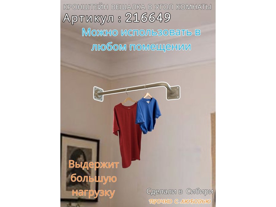 В корзину Купить в 1 клик Кронштейн для плечиков с одеждой, вешалка в угол комнаты 60 х 29 см "ПРОСЕКИНО 216649" серый, 22мм