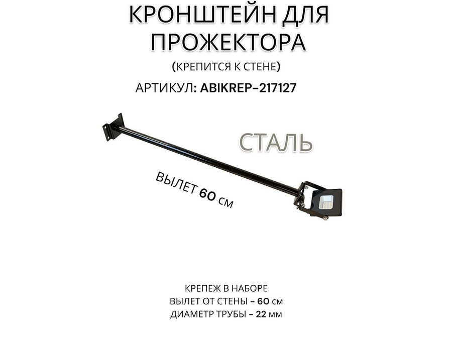 В корзину Купить в 1 клик Кронштейн для прожектора к стене, диаметр 22мм, вылет 0,6 м "ABIKREP-217127" черный, основание 9х6см