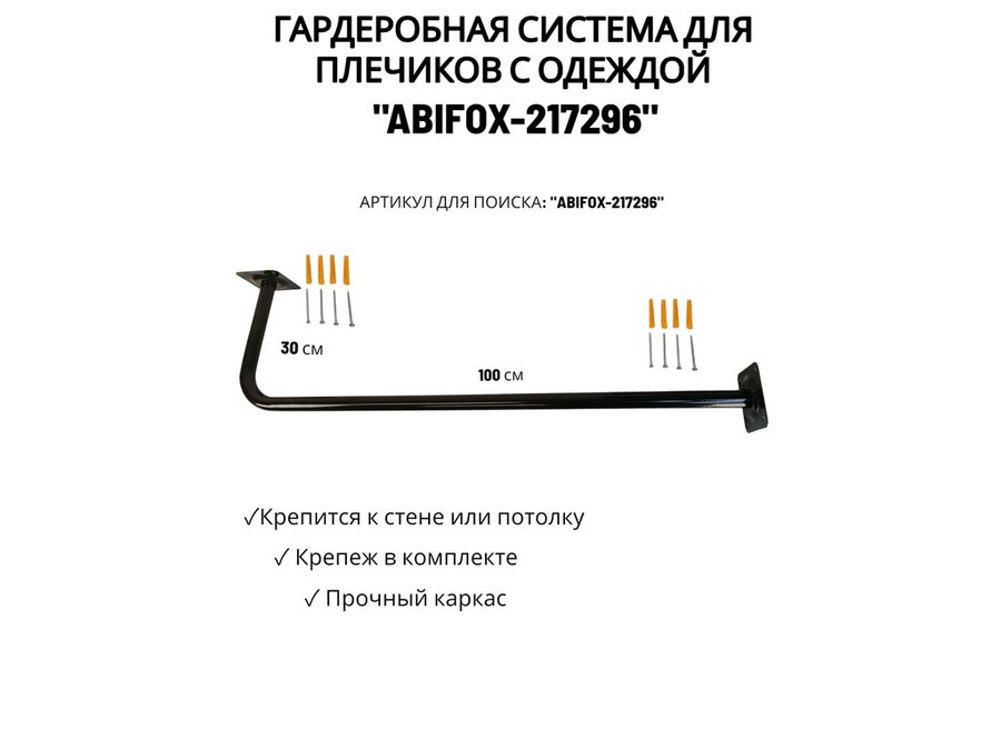 В корзину Купить в 1 клик Гардеробная система для плечиков с одеждой, длина 100см, вылет 30см "ABIKFOX-217296" черный,диам32мм