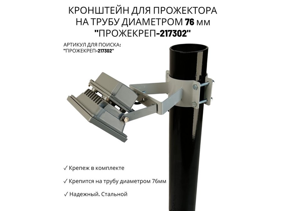 В корзину Купить в 1 клик Кронштейн усиленный для крепления прожектора на трубе до 51мм "ПРОЖЕКРЕП-215841" сталь, цвет черный